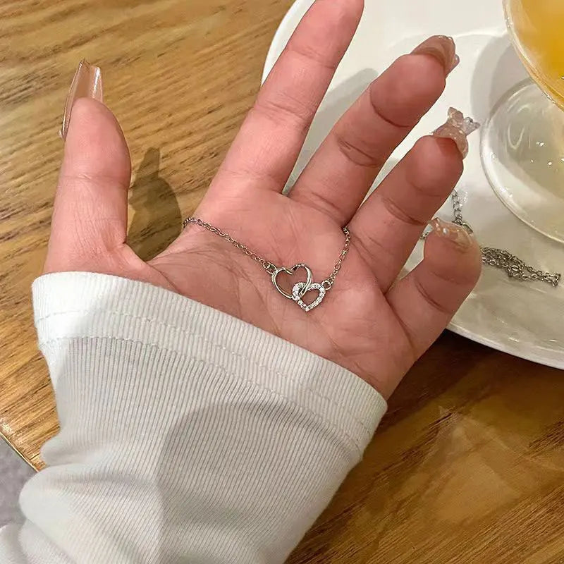 Add a touch of romance to your style with the Sparkling Entwined Hearts Necklace. This elegant piece showcases two beautifully intertwined hearts, symbolizing love and unity.