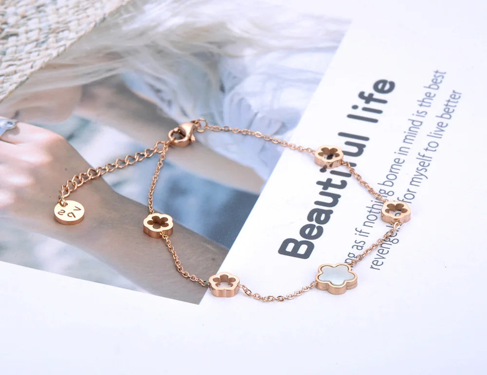 Add a touch of floral elegance to your collection with our White Flower Charm Bracelet. This delicate piece is beautifully crafted to bring a soft, feminine touch to any outfit. Set on a durable yet dainty chain, this bracelet is perfect for daily wear or adding a graceful accent to special occasions. Lightweight and easy to layer, it’s a versatile accessory that brings a fresh, elegant flair to your style.